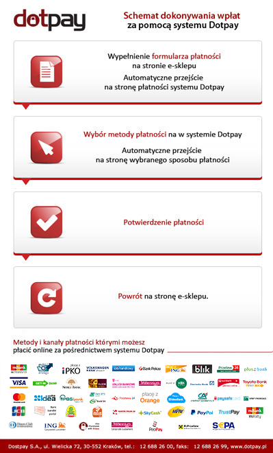 Rozliczenia transakcji kartą kredytową i e-przelewem przeprowadzane są za pośrednictwem Dotpay.pl
